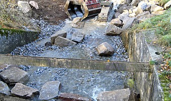 Dies ist der Ansatzpunkt für die ökologische Baubegleitung (ÖBB). Aus den Planunterlagen werden die speziellen ökologischen Erfordernisse entnommen, mit den Ausführenden besprochen und deren Umsetzung kontrolliert. Die ökologische Baubegleitung erfordert also gute Kenntnisse der Biotoptypen und der ökologischen Funktionen. Diese Fachkenntnis macht es darüber hinaus auch möglich, während der Bauarbeiten aufwertende Modifikationen schnell und unkompliziert durchzuführen. So konnte z.B. ein entstandener Kolk als zusätzliches Strukturelement belassen werden. Es ist also sinnvoll, daß die technische Bauleitung mit einer ökologischen Baubegleitung einher geht. Die ÖBB wird von uns bei Gewässerrevitalisierungen und auch bei Pegel- und Wehrumgestaltungen durchgeführt. So zum Beispiel beim Umbau des Pegels Brugga in Oberried (2023-2024).